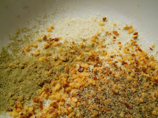 Potatoes, tossed in canola oil, seasoned with onion powder, red pepper/garlic seasoning, thyme, salt, pepper. Roasted at 400F until brown and crispy on the outside and tender on the inside.